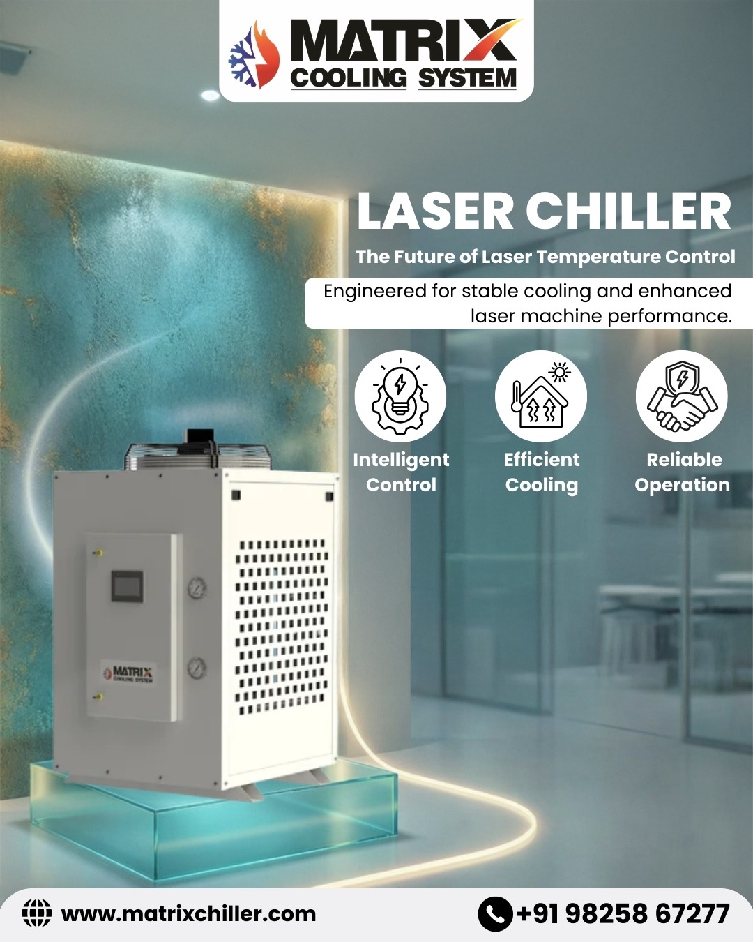 Matrix Cooling System is a trusted Laser Chillers Manufacturer in Ahmedabad, offering high-performance cooling solutions for CO2 and fiber lasers. Laser chillers are essential for maintaining optimal operating temperatures, preventing overheating, and protecting sensitive laser components. By circulating coolant, they ensure stable beam quality, enhance processing speed, and extend the lifespan of laser tubes.