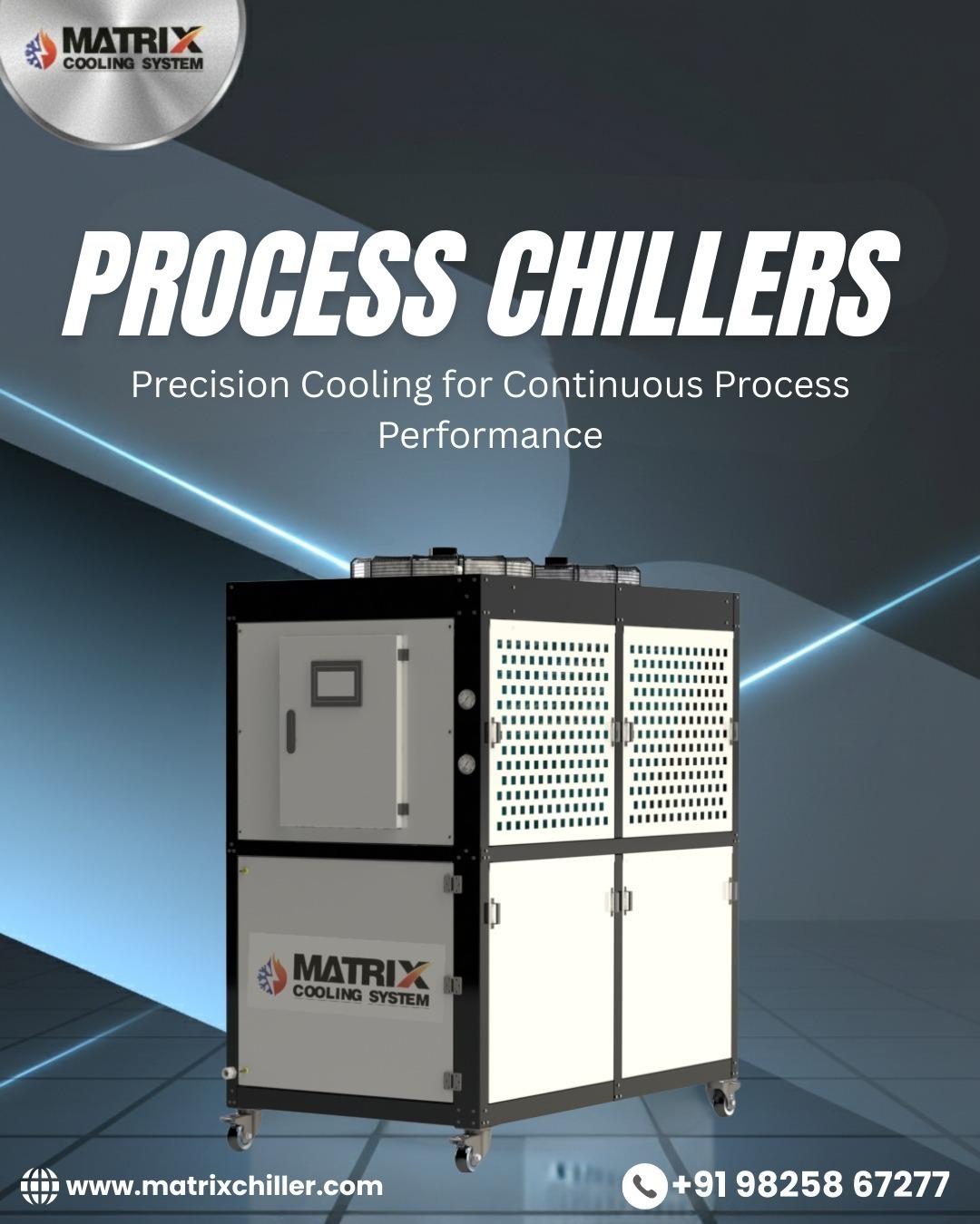 Process chillers play a vital role in industries where precise temperature control directly impacts product quality and production efficiency. At Matrix Cooling System, our advanced Process Chillers are designed for continuous, stable, and energy-efficient cooling across a wide range of industrial applications.