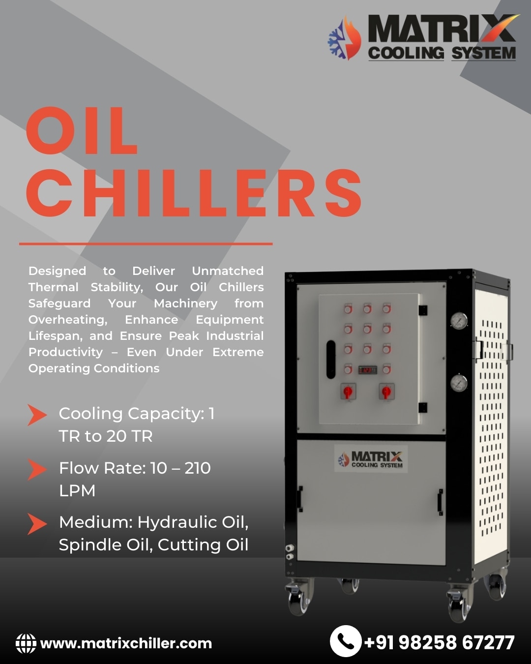 Looking for a reliable and efficient oil chiller for your industry? Contact Matrix Cooling System today for a customized solution that keeps your machines running at peak performance!