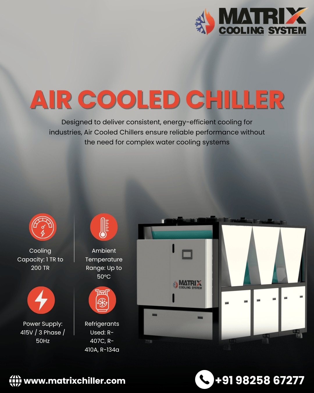 Upgrade your cooling system with Matrix Cooling System — the trusted name for Air Cooled Chillers in Ahmedabad, India.