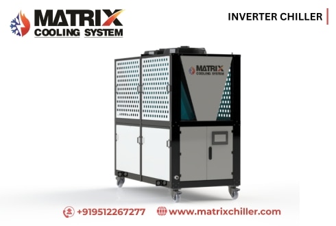 Top Inverter Chiller Manufacturers in Ahmedabad, India. At Matrix Cooling System, we bring you the next generation of energy-efficient cooling with our advanced Inverter Chiller range. Designed to deliver precision temperature control and high performance, our Inverter Chiller is the ideal choice for industries requiring consistent, reliable, and intelligent cooling solutions. What is an Inverter Chiller? Unlike traditional chillers that operate at a fixed speed, inverter chillers use a variable frequency drive (VFD) to adjust the compressor speed based on the actual cooling demand. This ensures the chiller only consumes as much energy as needed—eliminating waste and reducing operating costs. Our air-cooled inverter scroll chillers are built to support a wide range of industrial applications where consistent cooling performance is critical. From light-duty labs to full-scale production environments, Matrix chillers keep operations running smoothly with peak energy efficiency. Key Technical Parameters • Capacity Range: 2 TR to 50 TR • Compressor: Inverter-based Scroll / Screw • Frequency Range: 25Hz to 70Hz • Refrigerant: R-410A / R-407C • Temperature Control Accuracy: ±0.1°C • Inverter Drive: Built-in VFD for energy savings Smarter Cooling Starts with Matrix • Significant reduction in power consumption during partial load operations • Faster cooling response and stabilization • Quiet and vibration-free working conditions • Seamless integration with PLC, HMI, and IoT dashboards for smart monitoring and control Application Industries Our Inverter Chiller is perfectly suited for: • Precision Molding & Packaging Units • Medical & Diagnostic Equipment Cooling • Pharmaceutical Process Cooling • IT Server Room Temperature Management • Offset Printing and UV Curing Systems Matrix Cooling System is committed to providing cutting-edge industrial cooling solutions that deliver performance, savings, and peace of mind. Explore the efficiency and precision of our Inverter Chiller today and power your operations with smarter cooling. Looking to Upgrade to a Smarter Chiller? Contact Matrix Cooling System today to learn how our inverter chillers can lower your energy bills and enhance your production efficiency.